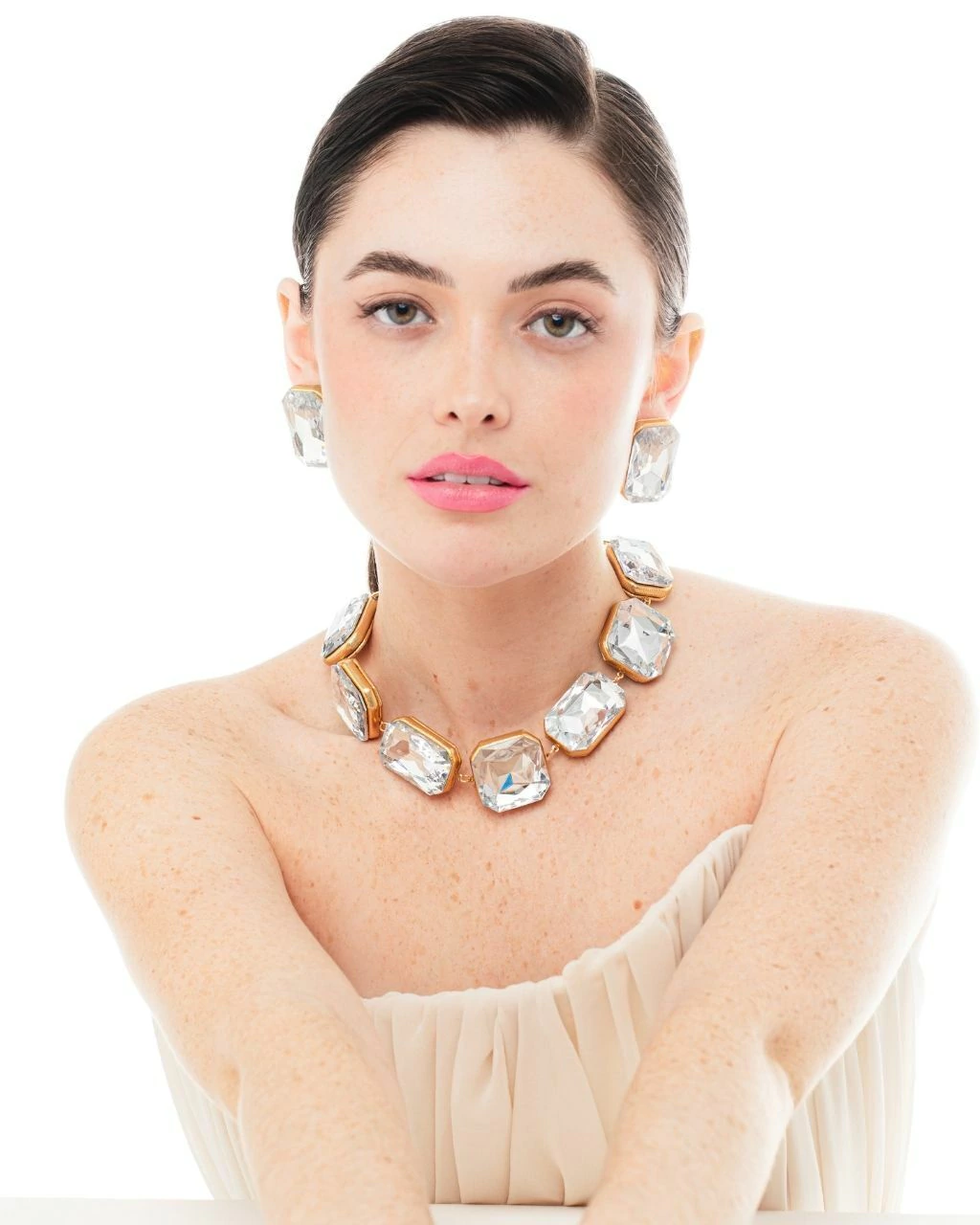 As pedras acrílicas reluzem sobre a base de couro e criam peças que carregam o brilho dos instantes que merecem ser lembrados.